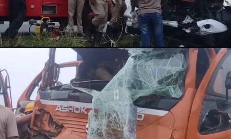ಹಾವೇರಿ: ನಗರದ ರಾಷ್ಟ್ರೀಯ ಹೆದ್ದಾರಿಯಲ್ಲಿ ಗುರುವಾರ ತಡರಾತ್ರಿ ಸಂಭವಿಸಿದ ಭೀಕರ ರಸ್ತೆ ಅಪಘಾತದಲ್ಲಿ, ಲಾರಿಯ ಕ್ಯಾಬಿನ್ನಲ್ಲಿ ಸಿಲುಕಿ ಸಾವು-ಬದುಕಿನ ನಡುವೆ ಹೋರಾಡುತ್ತಿದ್ದ ಚಾಲಕನನ್ನು ಅಗ್ನಿಶಾಮಕ ದಳ ಮತ್ತು 108 ಅಂಬುಲೆನ್ಸ್ ಸಿಬ್ಬಂದಿ ಸಮಯಪ್ರಜ್ಞೆ ಮೆರೆದು ಯಶಸ್ವಿಯಾಗಿ ರಕ್ಷಿಸಿದ್ದಾರೆ.